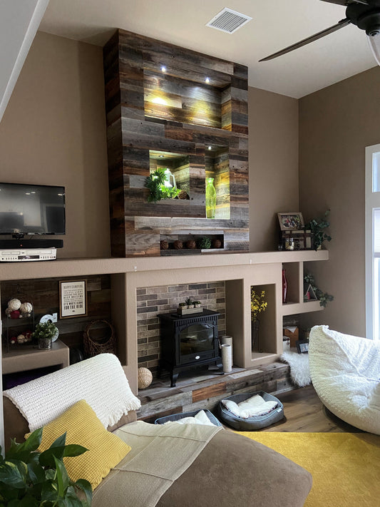 Woodstock Walls' DIY architectural wood panels from the Americana Collection features weathered, textured finishes of new and reclaimed wood from America's backcountry. Custom designs available.