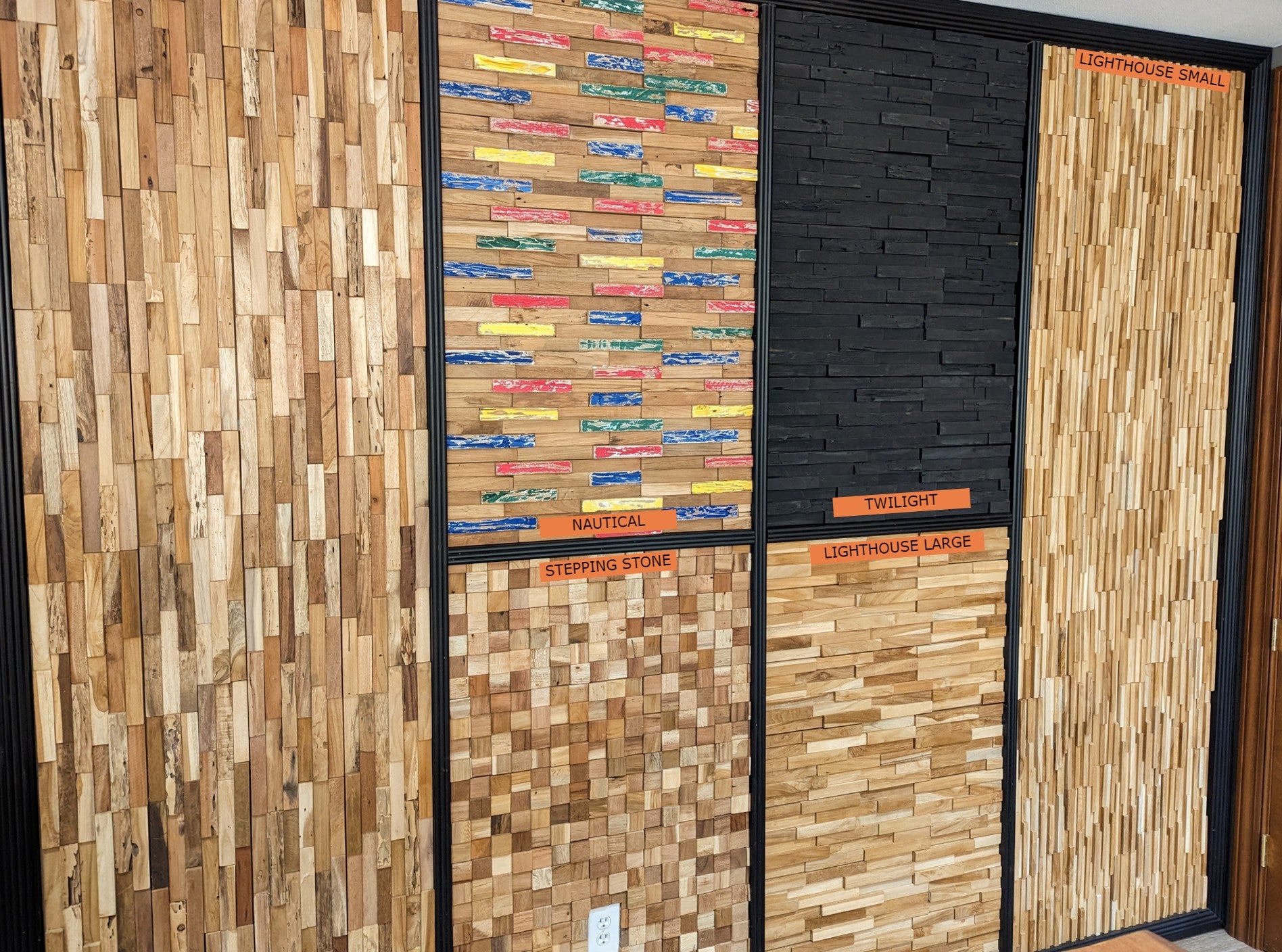 Wood Wall Designs are made with real tropical and domestic hardwoods sourced from land and sea, near and far. Both new lumber and wood reclaimed from decades old structures create dynamic variations in grain, knots, and patterns providing a stunning three-dimensional effect on each panel, infused with depth and character.