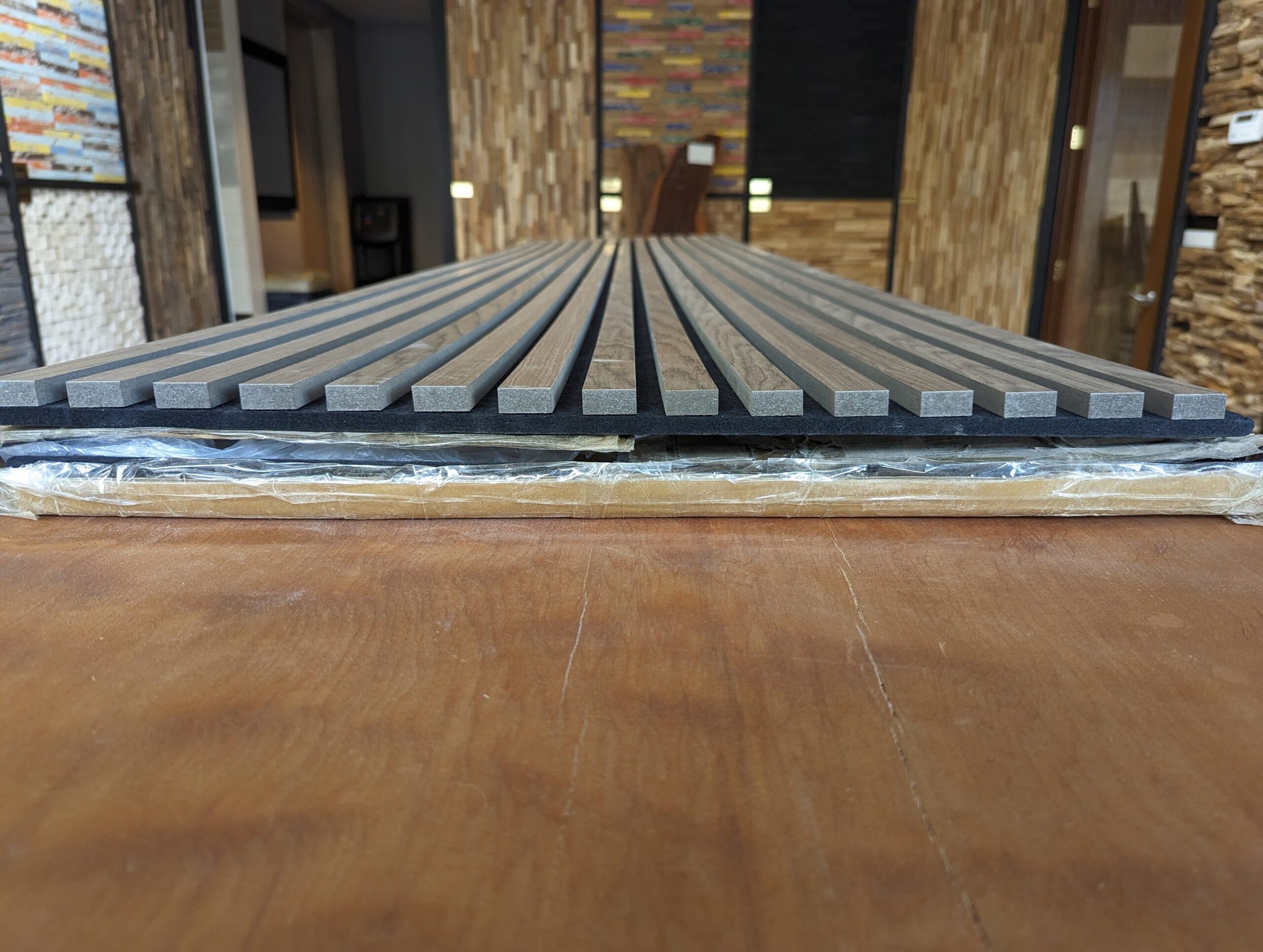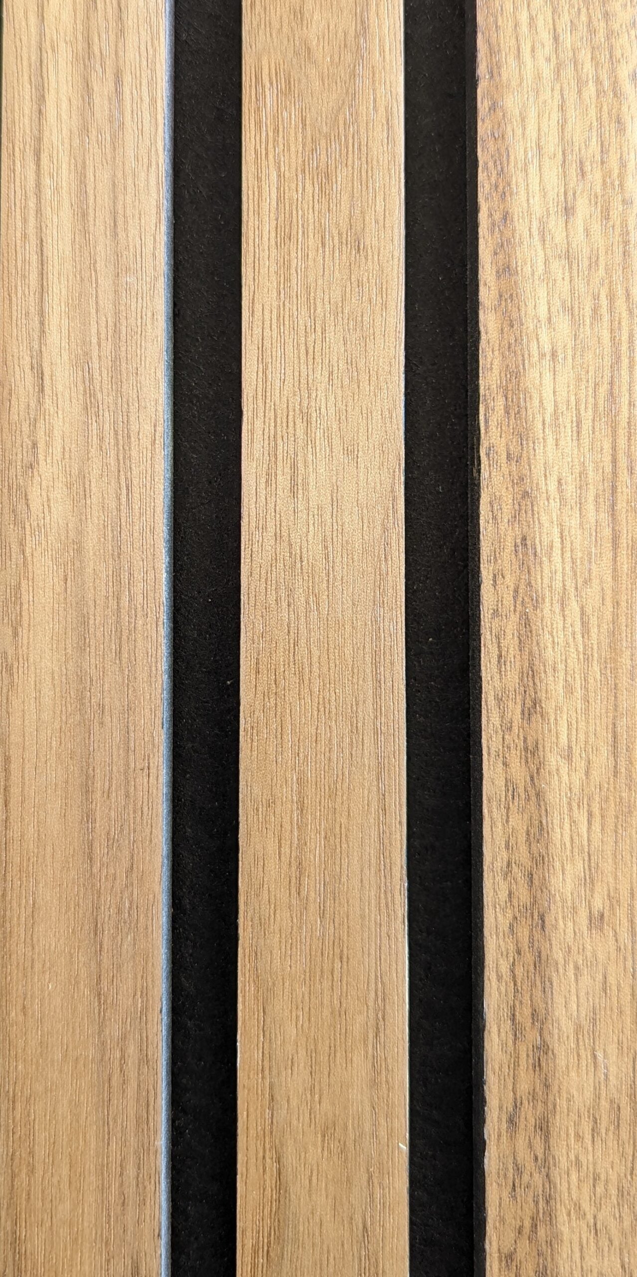 - Acoustic properties to help sound in the room. The slats sit off the wall slightly with our adhesive, helping the wood to absorb and amplify the sound waves at the same time from the open slats!
